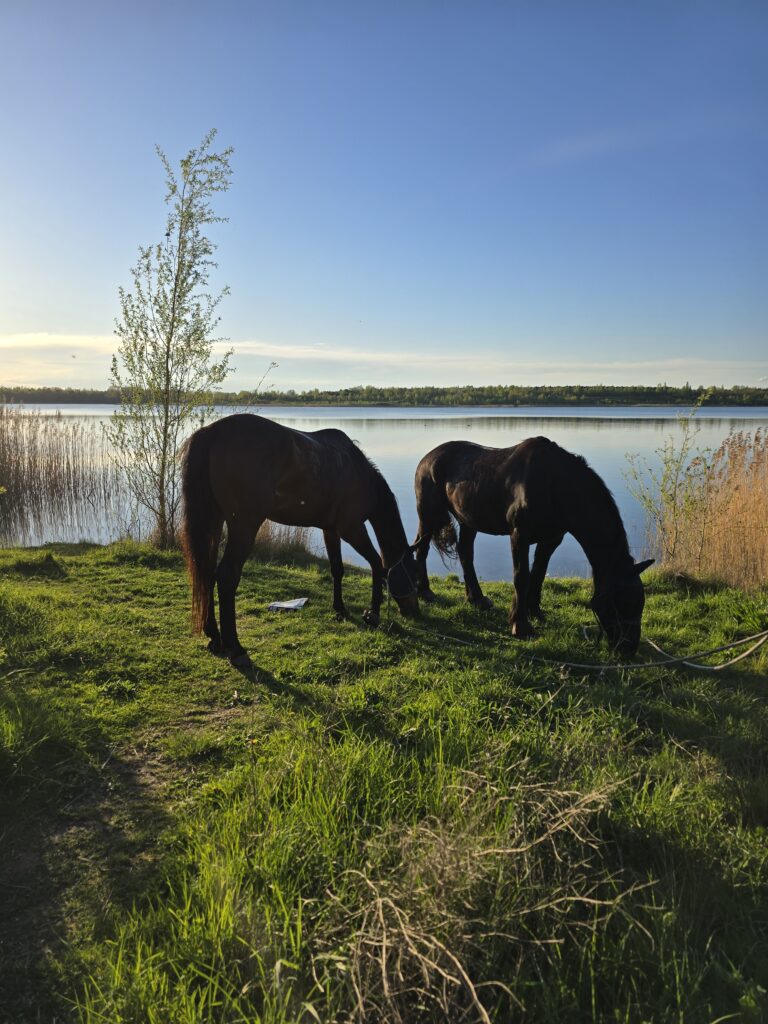 Ein paar Tiefflieger erlebten wir auch und obwohl wir die Köpfe einziehen mussten, blieben die Pferde ganz cool.